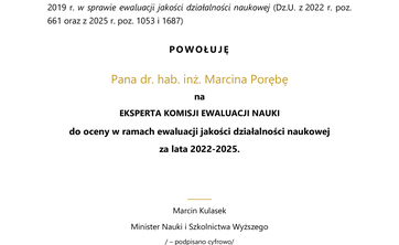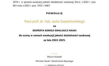 Z ogromną dumą informujemy, że Minister Nauki i Szkolnictwa Wyższego powołał trzech naszych profesorów na Ekspertów Komisji Ewaluacji Nauki: